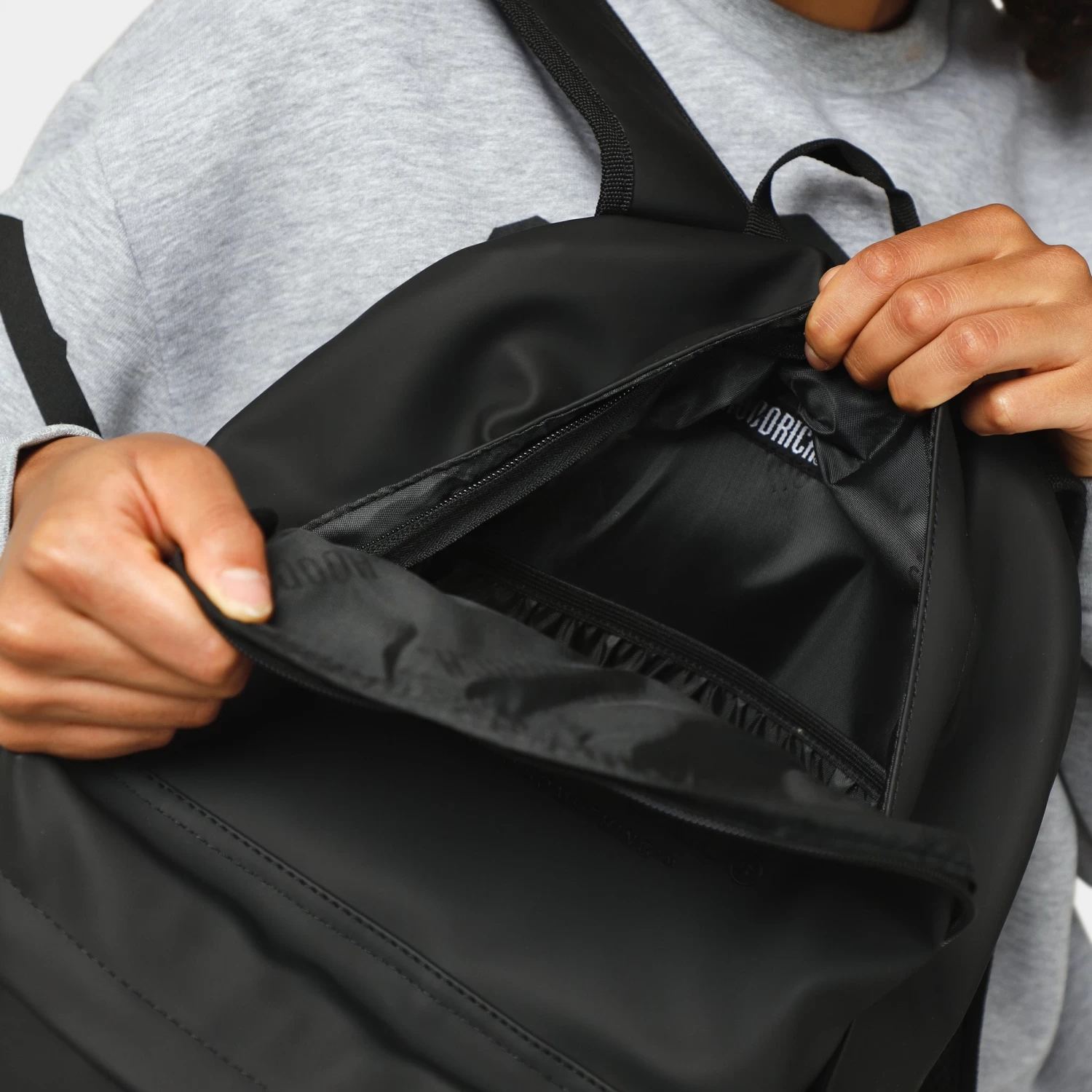 Represent with the Hoodrich OG Chromatic Backpack. Stealthy branding meets functional design for on-the-go ease, featuring a spacious main compartment, adjustable padded shoulder straps, and external zip pocket for small goods.