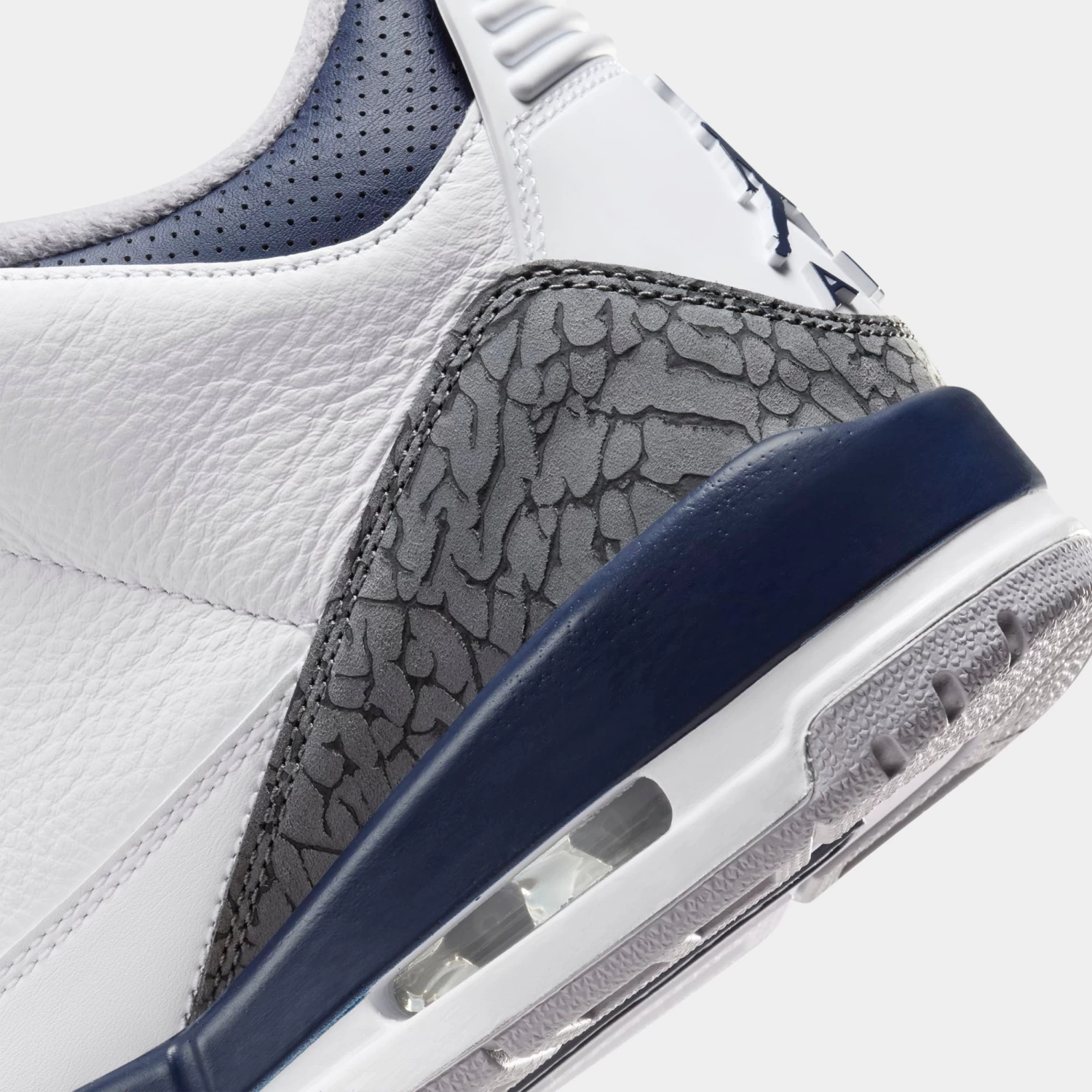 Reign supreme in clean, classic style with the Jordan 3 Retro “Midnight Navy.” Borrowing the colour-blocking of a heritage AJ3 colourway, this edition offers a palette that’s new and fresh while also true to its roots. Quality leather constructs the upper for both durability and premium styling, while a Nike Air unit underfoot provides lasting comfort and cushioning to each step.