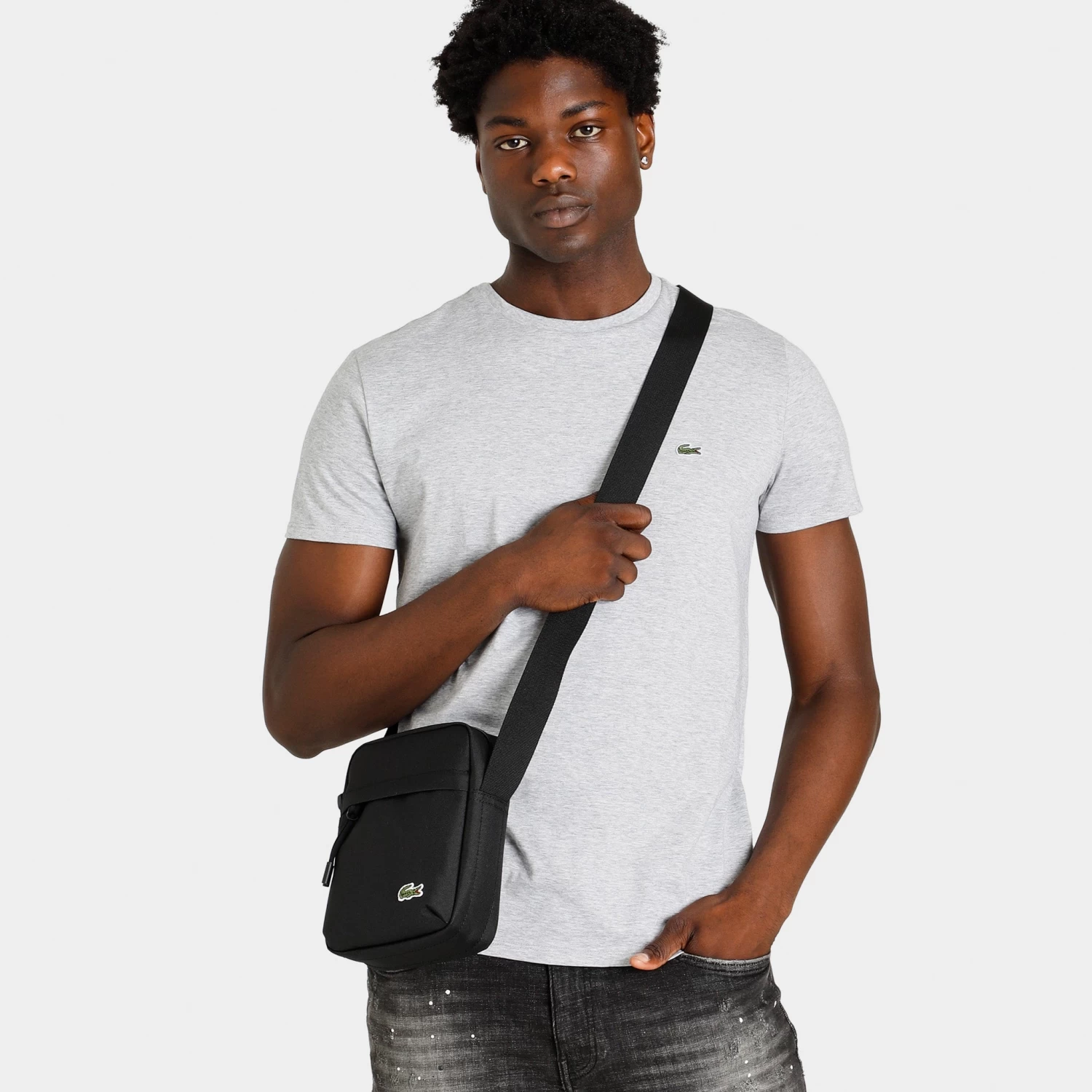 - Minimalist crossbody design adorned with Lacoste Crocodile on front