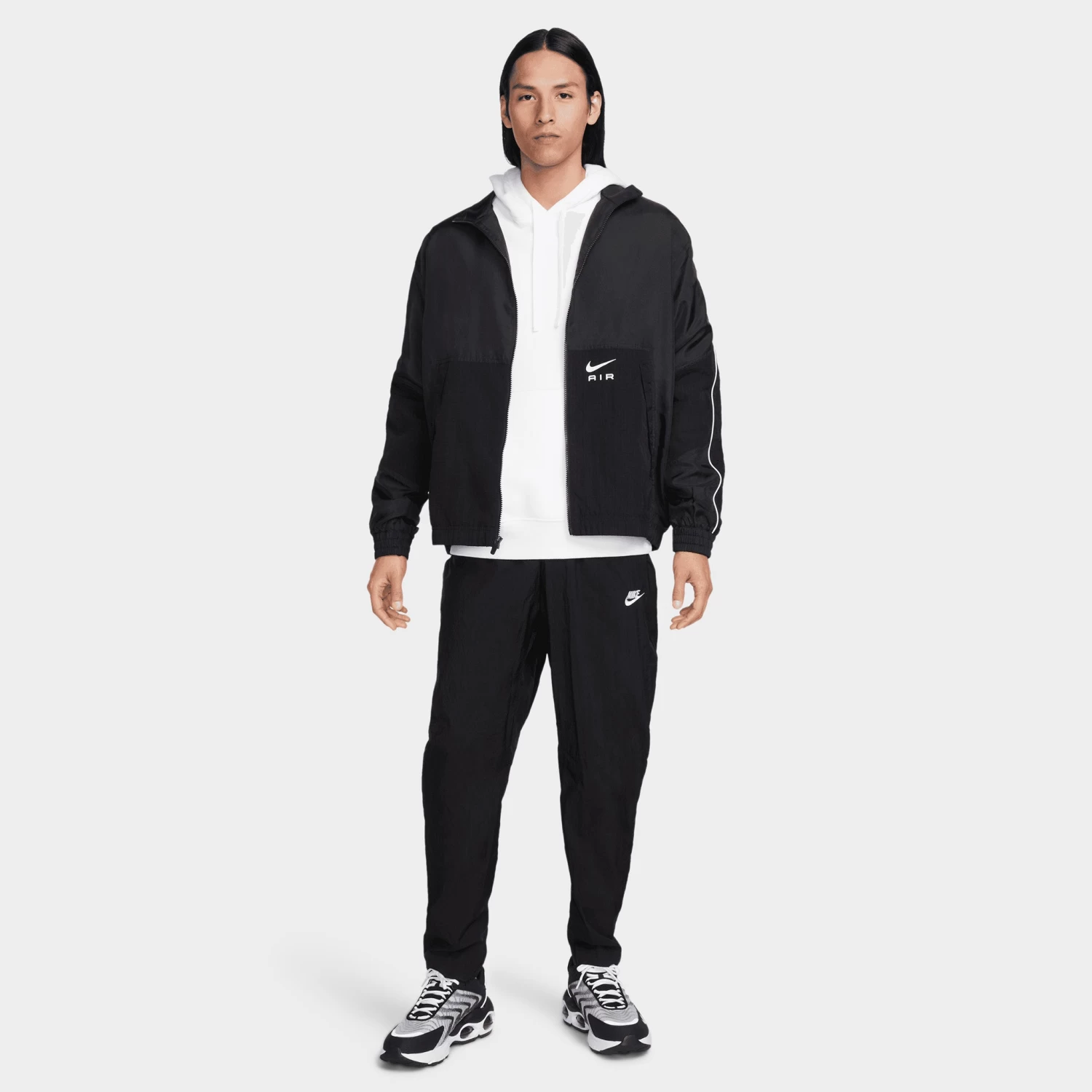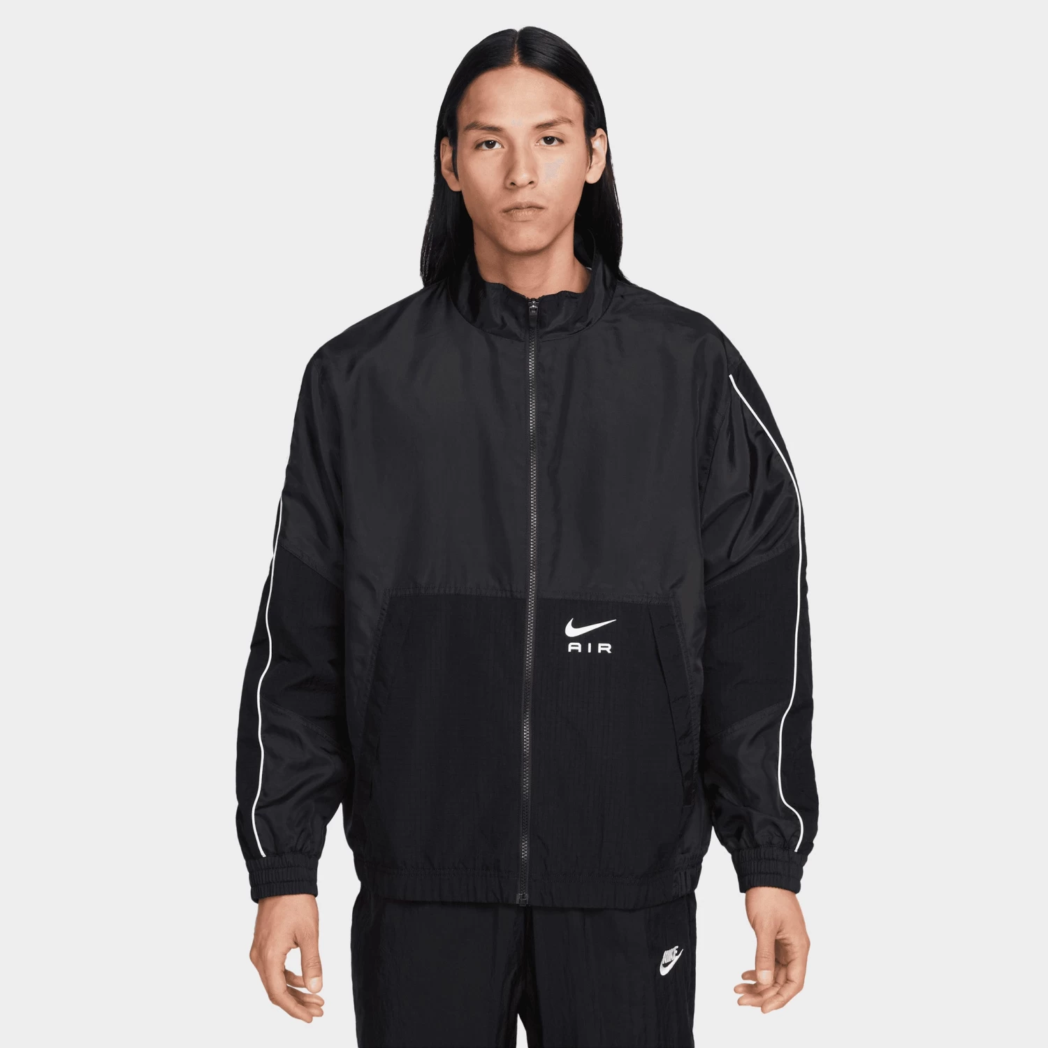 Roomy enough to layer, lightweight enough to keep you cool, the Nike Air Woven Track Jacket is a seasonal gem. Its crinkled taffeta material feels retro, while sporty Nike graphics and ripstop panels flow with sweatpants, joggers, or track pants.