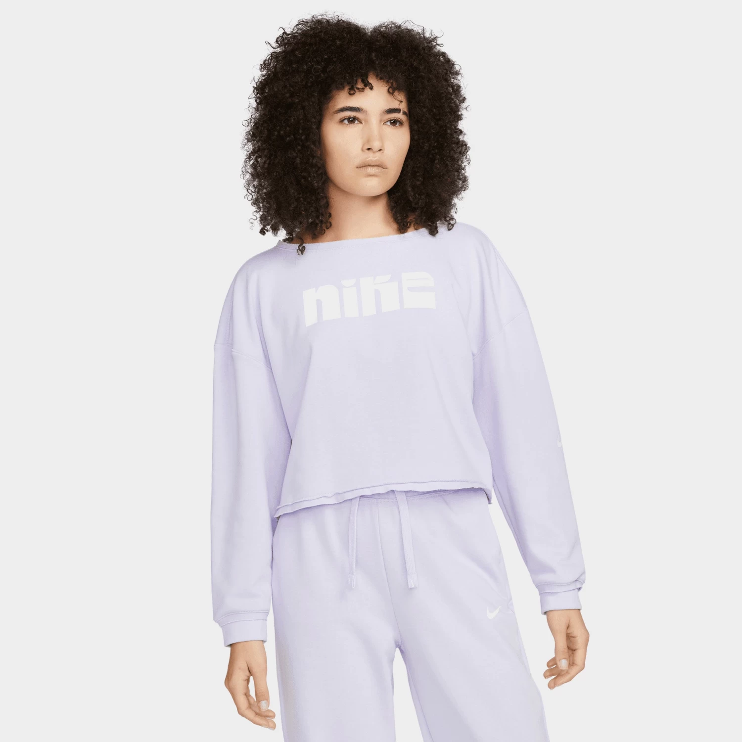 Featuring playful block letter branding, the Nike Women’s Fleece Training Sweatshirt delivers a comfy feel and stylish look. Made with cozy cotton blend, it has a cropped hem that pairs perfectly with high-waisted leggings, pants, or your favourite jeans.
